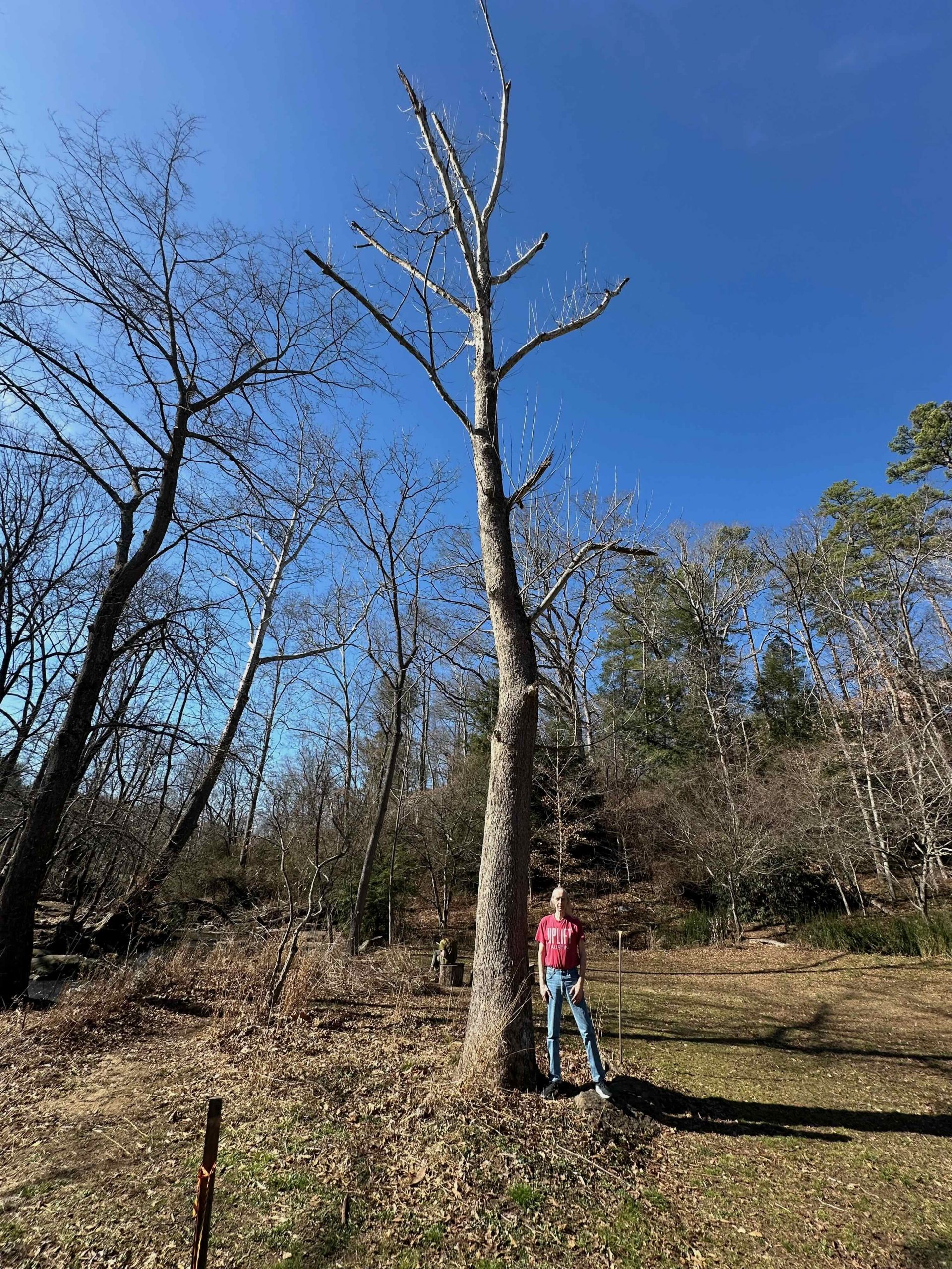 At the Asheville Botanical Garden with a sycamore tree planted from a seed that travelled around the moon with astronaut Stuart Roosa during Apollo 14 in 1971.